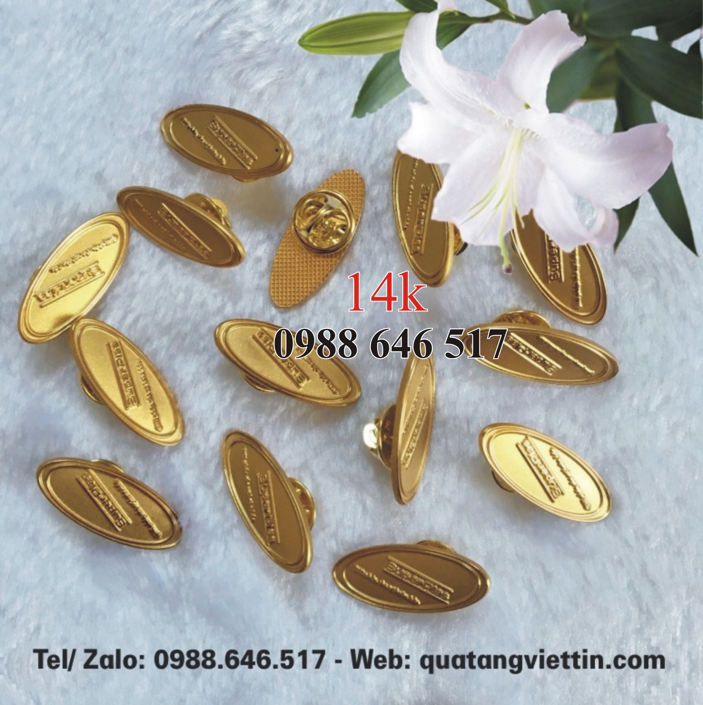 + Được chế tác bằng chất liệu đồng thau, mạ vàng 24k theo logo độc quyền.